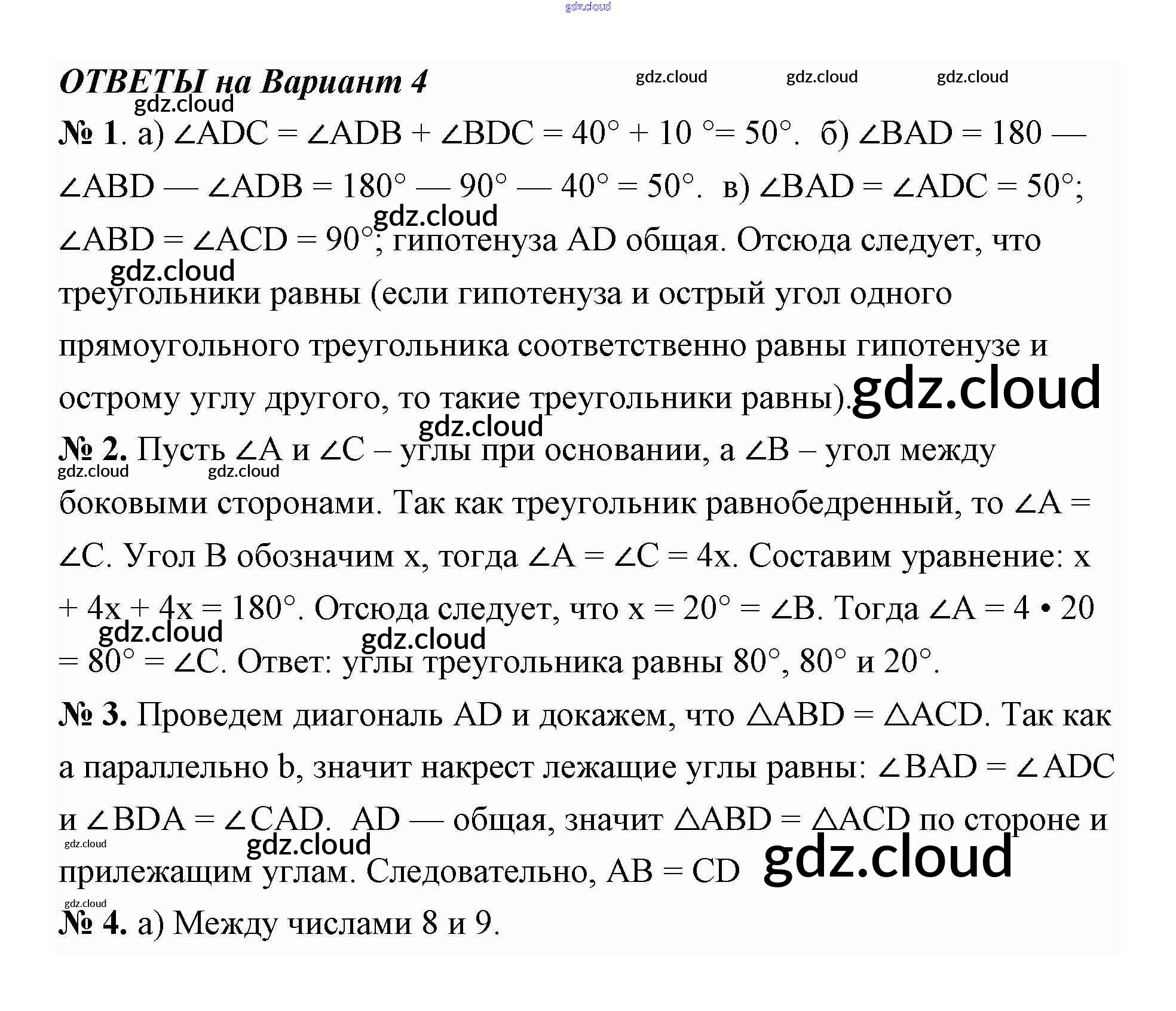 Ответы к итоговым контрольным работам (Варианты) по Геометрии 7 класс Поурочные разработки Гаврилова ВАКО