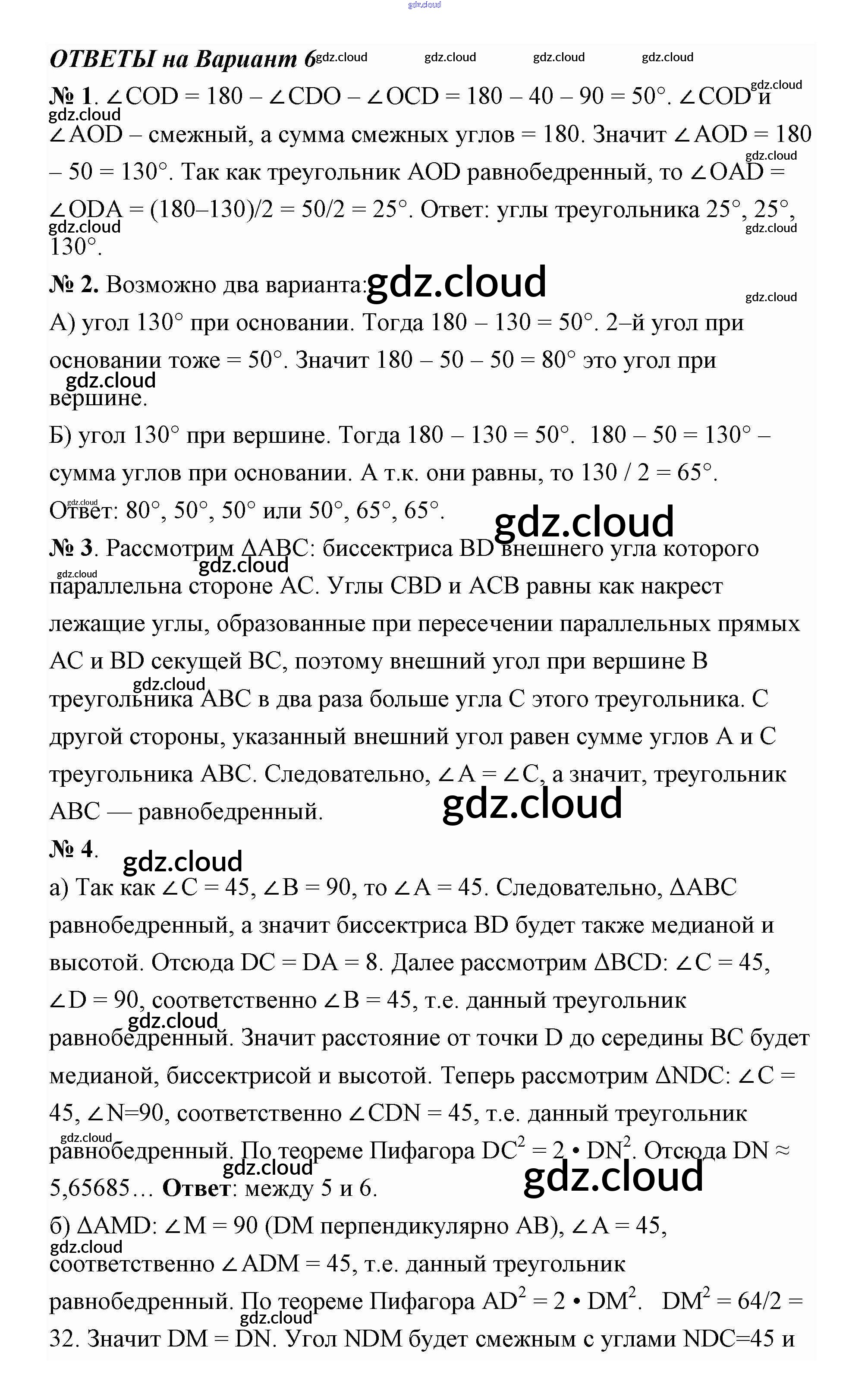 Ответы к итоговым контрольным работам (Варианты) по Геометрии 7 класс Поурочные разработки Гаврилова ВАКО