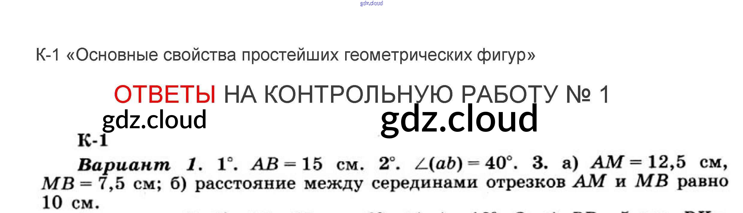 Ответы к КР №1 по Геометрии 7 класс Дидактические материалы Гусев Просвещение