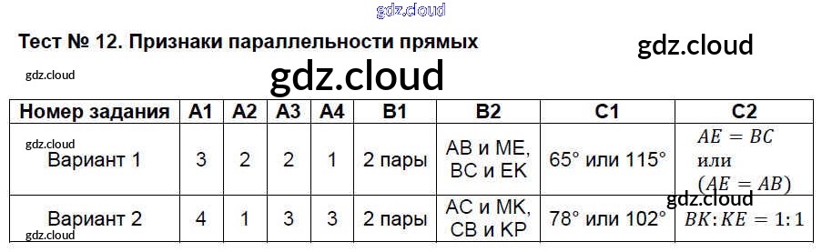 Ответ на задание 12 Контрольно-измерительные материалы (КИМ) Геометрия за 7 (седьмой) класс Гаврилова 2017 ФГОС онлайн и без номера телефона.