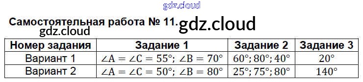 Ответ на задание 11 Контрольно-измерительные материалы (КИМ) Геометрия за 7 (седьмой) класс Гаврилова 2017