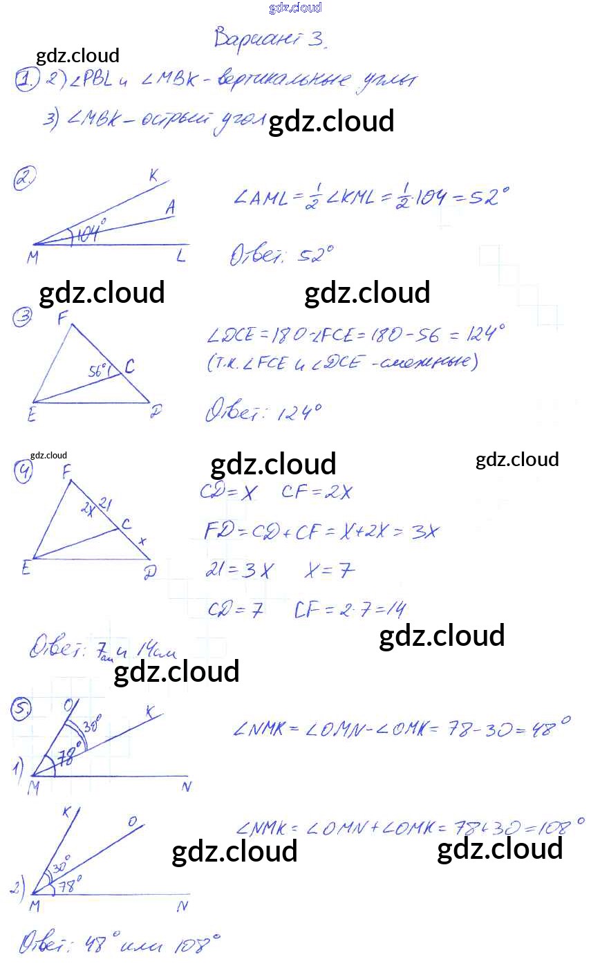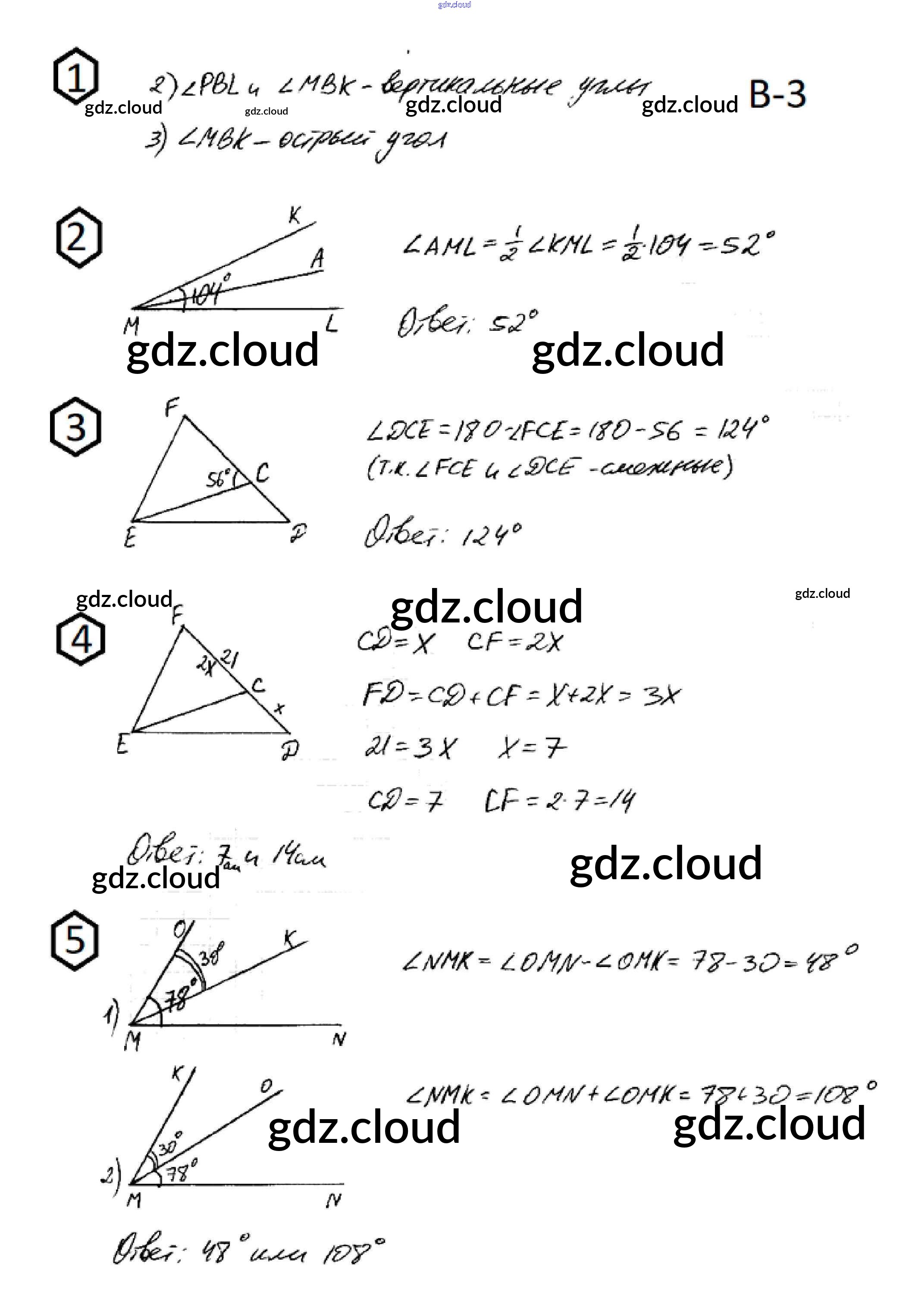 Ответы к КР-1. Варианты по Геометрии 7 класс Контрольные работы Мельникова УМК Экзамен