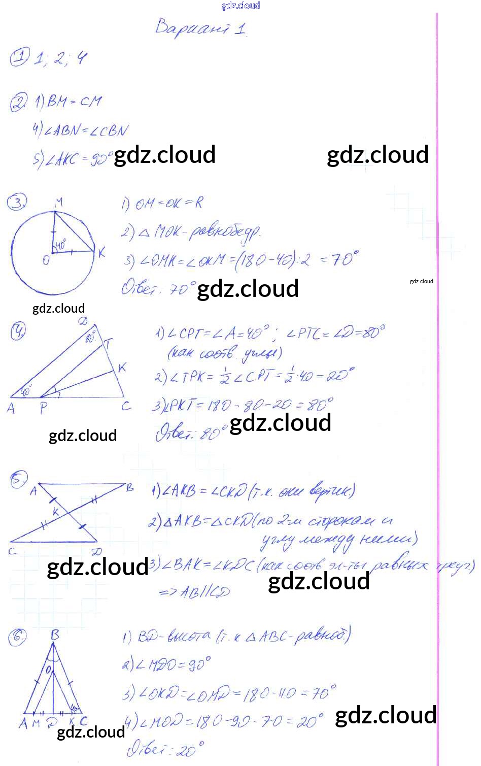 Ответы к КР-5. Варианты по Геометрии 7 класс Контрольные работы Мельникова УМК Экзамен