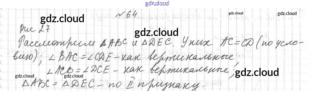 Ответ на задание 64 Дидактические материалы Геометрия за 7 (седьмой) класс Мерзляк, Полонский, Рабинович, Якир Алгоритм успеха 2017