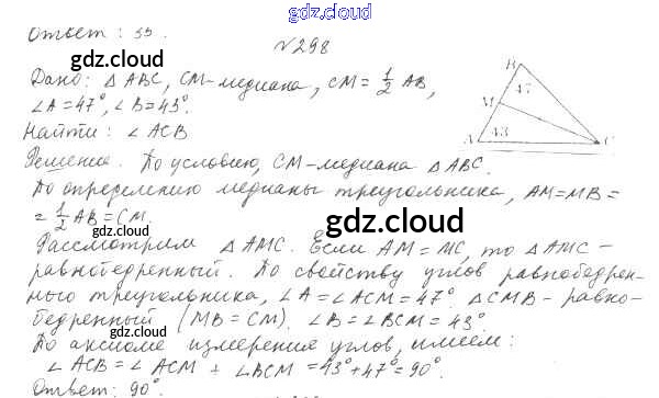 Ответ на задание 298 Учебник Геометрия за 7 (седьмой) класс Мерзляк, Полонский, Якир Алгоритм успеха 2017