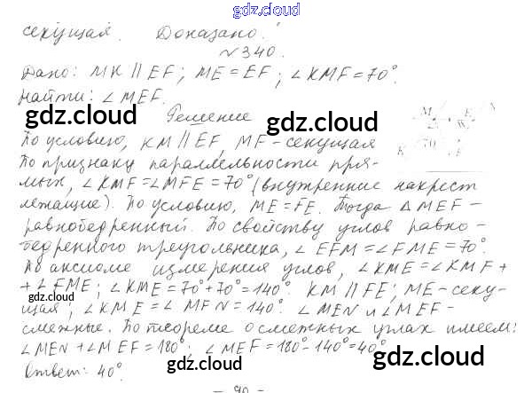 Ответ на задание 340 Учебник Геометрия за 7 (седьмой) класс Мерзляк, Полонский, Якир Алгоритм успеха 2017