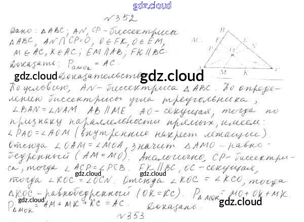 Ответ на задание 352 Учебник Геометрия за 7 (седьмой) класс Мерзляк, Полонский, Якир Алгоритм успеха 2017