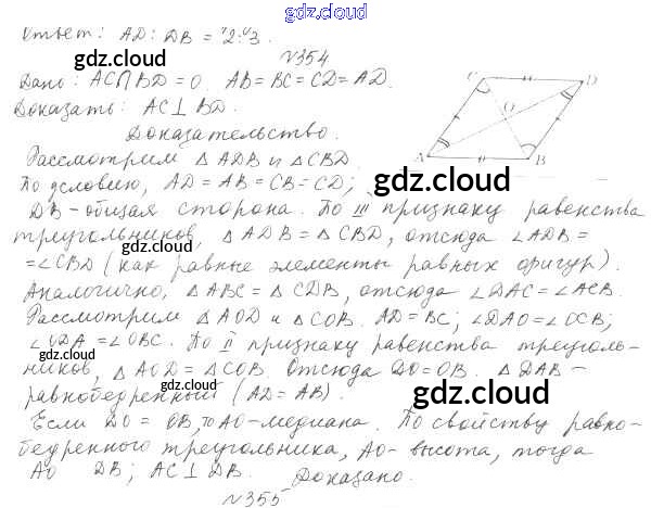 Ответ на задание 354 Учебник Геометрия за 7 (седьмой) класс Мерзляк, Полонский, Якир Алгоритм успеха 2017