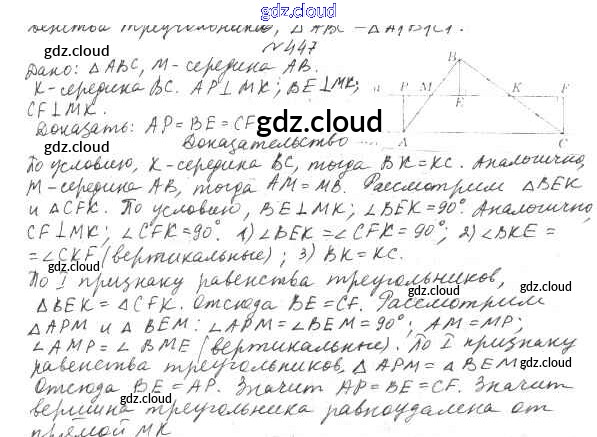 Ответ на задание 447 Учебник Геометрия за 7 (седьмой) класс Мерзляк, Полонский, Якир Алгоритм успеха 2017