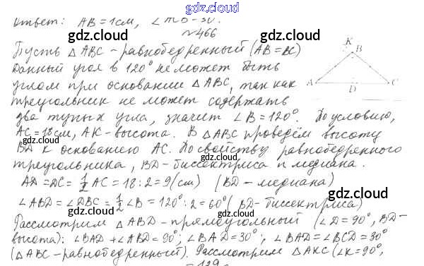 Ответ на задание 466 Учебник Геометрия за 7 (седьмой) класс Мерзляк, Полонский, Якир Алгоритм успеха 2017