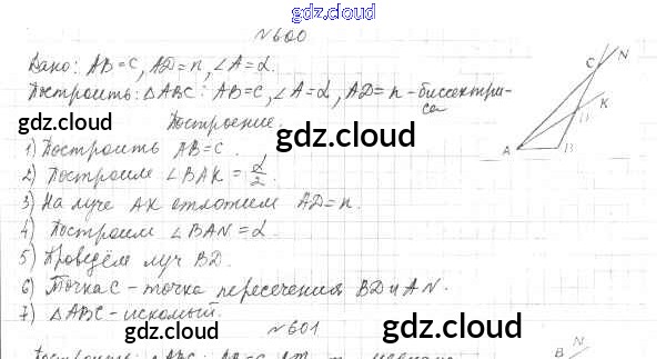 Ответ на задание 600 Учебник Геометрия за 7 (седьмой) класс Мерзляк, Полонский, Якир Алгоритм успеха 2017