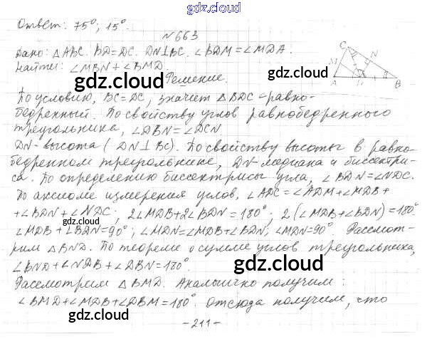 Ответ на задание 663 Учебник Геометрия за 7 (седьмой) класс Мерзляк, Полонский, Якир Алгоритм успеха 2017