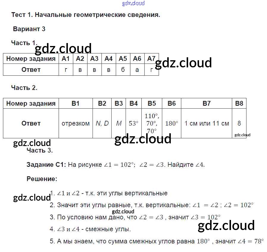 Ответ на задание 3 Тесты Геометрия за 7 (седьмой) класс Фарков УМК 2015 ФГОС онлайн и без номера телефона.