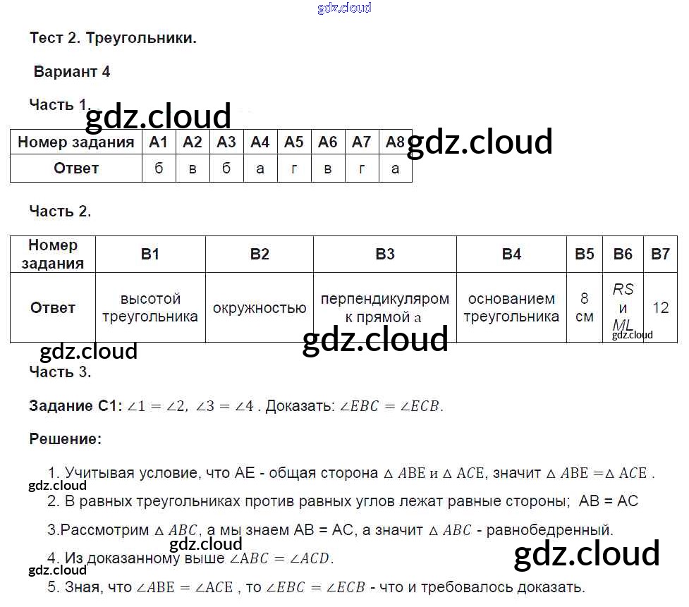 Ответ на задание 4 Тесты Геометрия за 7 (седьмой) класс Фарков УМК 2015 ФГОС онлайн и без номера телефона.