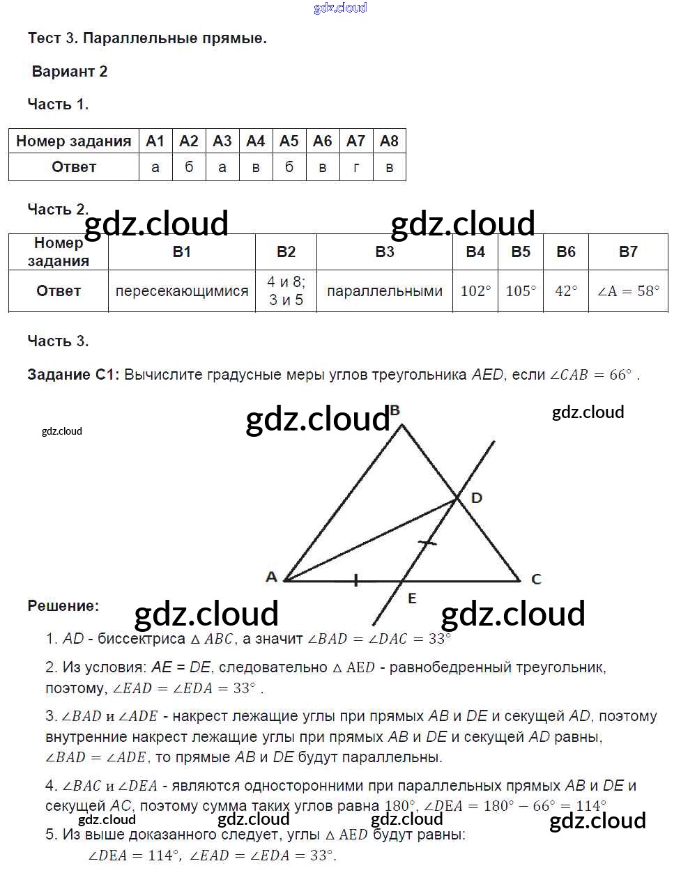 Ответ на задание 2 Тесты Геометрия за 7 (седьмой) класс Фарков УМК 2015 ФГОС онлайн и без номера телефона.