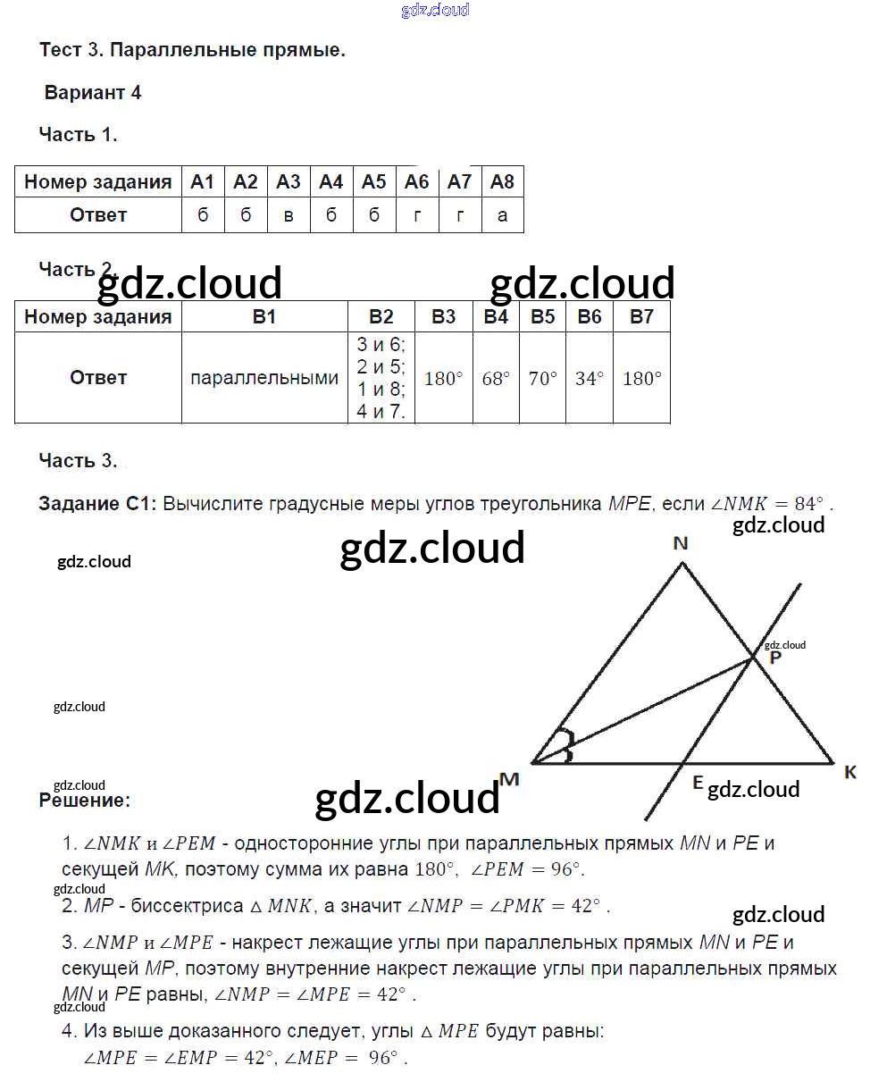 Ответы к Главе 3. Варианты по Геометрии 7 класс Тесты Фарков УМК Экзамен