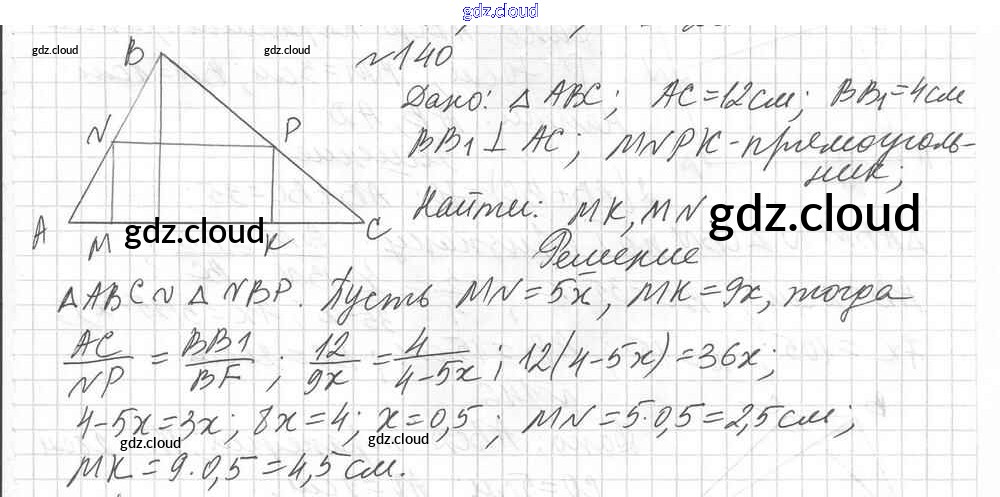 Ответ на задание 140 Дидактические материалы Геометрия за 8 (восьмой) класс Мерзляк, Полонский, Рабинович, Якир Алгоритм успеха 2017