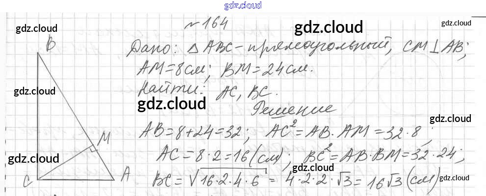 Ответ на задание 164 Дидактические материалы Геометрия за 8 (восьмой) класс Мерзляк, Полонский, Рабинович, Якир Алгоритм успеха 2017