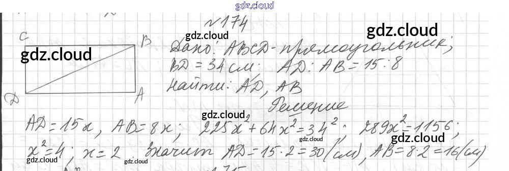 Ответ на задание 174 Дидактические материалы Геометрия за 8 (восьмой) класс Мерзляк, Полонский, Рабинович, Якир Алгоритм успеха 2017
