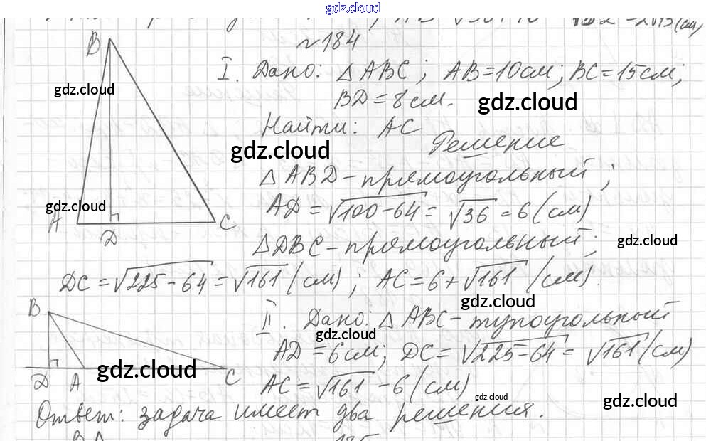 Ответ на задание 184 Дидактические материалы Геометрия за 8 (восьмой) класс Мерзляк, Полонский, Рабинович, Якир Алгоритм успеха 2017
