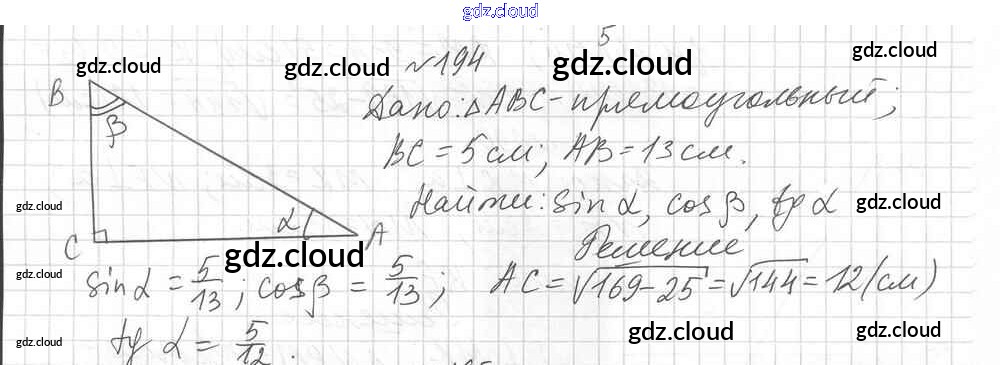 Ответ на задание 194 Дидактические материалы Геометрия за 8 (восьмой) класс Мерзляк, Полонский, Рабинович, Якир Алгоритм успеха 2017