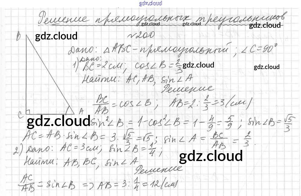 Ответ на задание 200 Дидактические материалы Геометрия за 8 (восьмой) класс Мерзляк, Полонский, Рабинович, Якир Алгоритм успеха 2017