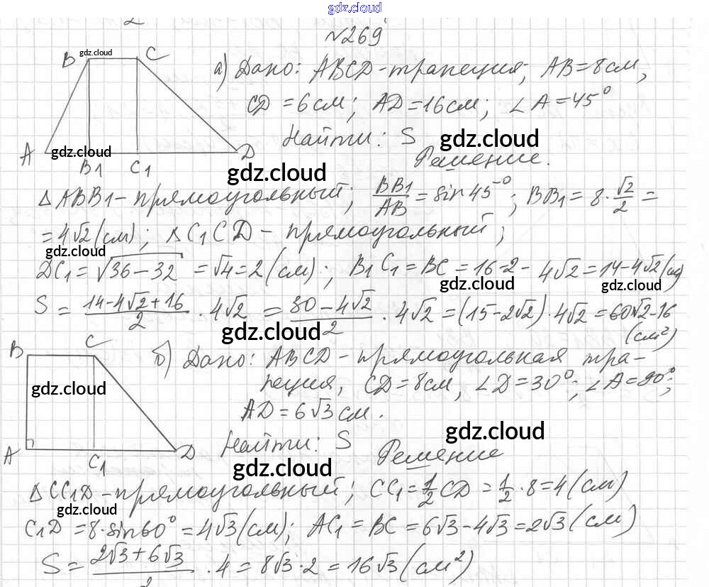 Ответ на задание 269 Дидактические материалы Геометрия за 8 (восьмой) класс Мерзляк, Полонский, Рабинович, Якир Алгоритм успеха 2017