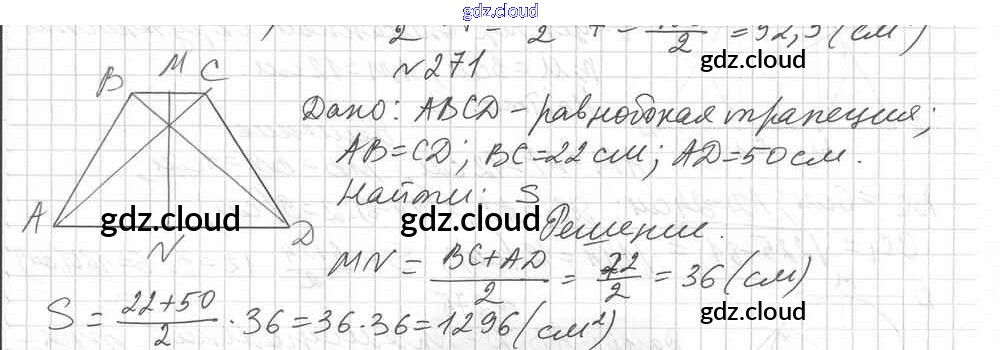 Ответ на задание 271 Дидактические материалы Геометрия за 8 (восьмой) класс Мерзляк, Полонский, Рабинович, Якир Алгоритм успеха 2017