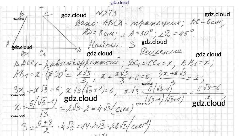 Ответ на задание 273 Дидактические материалы Геометрия за 8 (восьмой) класс Мерзляк, Полонский, Рабинович, Якир Алгоритм успеха 2017