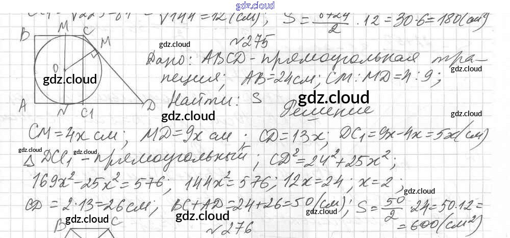 Ответ на задание 275 Дидактические материалы Геометрия за 8 (восьмой) класс Мерзляк, Полонский, Рабинович, Якир Алгоритм успеха 2017