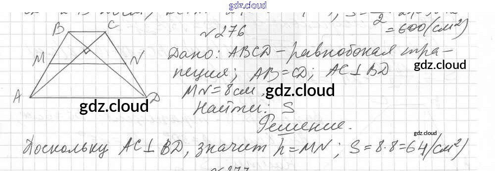 Ответ на задание 276 Дидактические материалы Геометрия за 8 (восьмой) класс Мерзляк, Полонский, Рабинович, Якир Алгоритм успеха 2017