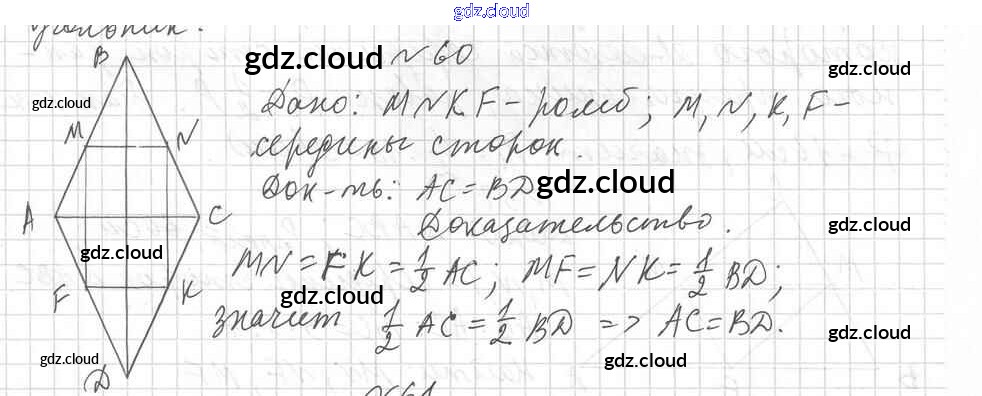 Ответ на задание 60 Дидактические материалы Геометрия за 8 (восьмой) класс Мерзляк, Полонский, Рабинович, Якир Алгоритм успеха 2017