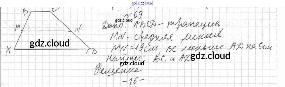 Ответ на задание 69 Дидактические материалы Геометрия за 8 (восьмой) класс Мерзляк, Полонский, Рабинович, Якир Алгоритм успеха 2017