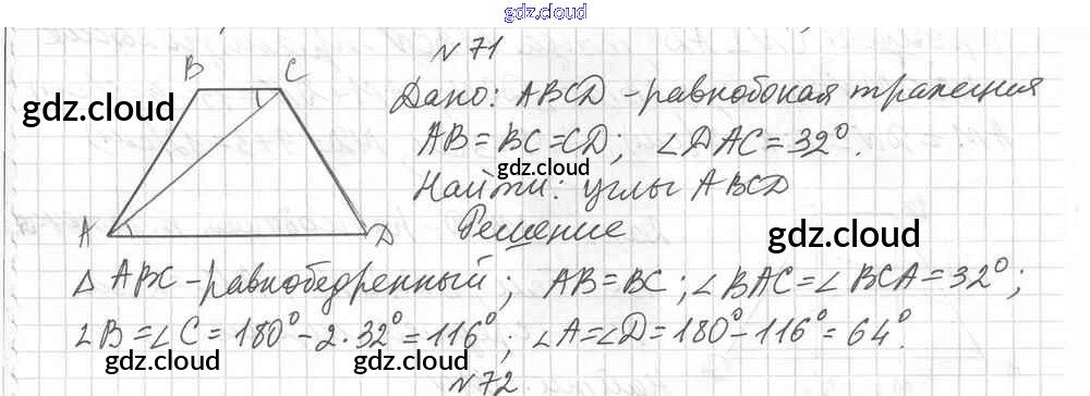 Ответ на задание 71 Дидактические материалы Геометрия за 8 (восьмой) класс Мерзляк, Полонский, Рабинович, Якир Алгоритм успеха 2017