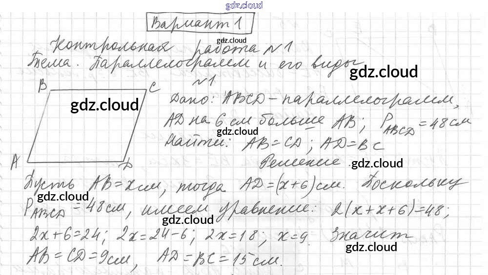 Вариант 1 Ответы к Контрольным работам по Геометрии 8 класс Дидактические материалы Мерзляк Алгоритм успеха Вентана-граф