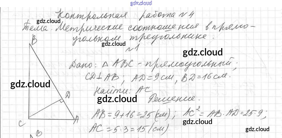 Вариант 1 Ответы к Контрольным работам по Геометрии 8 класс Дидактические материалы Мерзляк Алгоритм успеха Вентана-граф