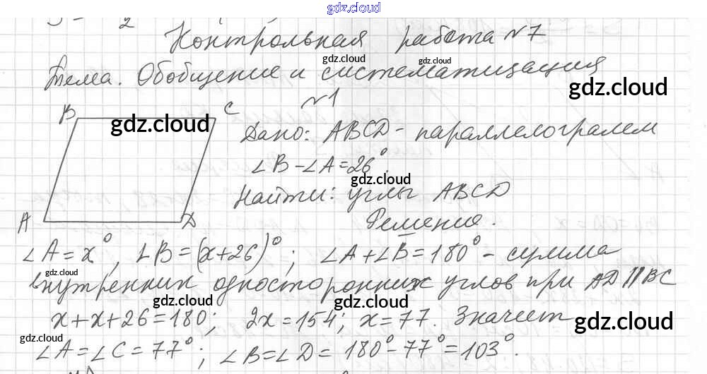 Вариант 1 Ответы к Контрольным работам по Геометрии 8 класс Дидактические материалы Мерзляк Алгоритм успеха Вентана-граф