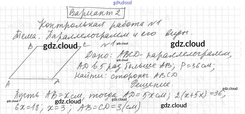 Вариант 2 Ответы к Контрольным работам по Геометрии 8 класс Дидактические материалы Мерзляк Алгоритм успеха Вентана-граф