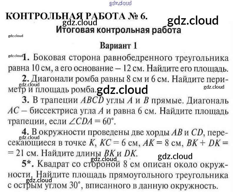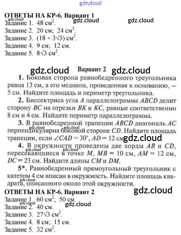 Ответ на задание КР-6 Контрольно-измерительные материалы (КИМ) Геометрия за 8 (восьмой) класс Гаврилова 2018