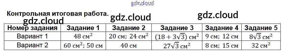 Ответы к Контрольным работам по Геометрии 8 класс Контрольно-измерительные материалы (КИМ) Гаврилова ВАКО