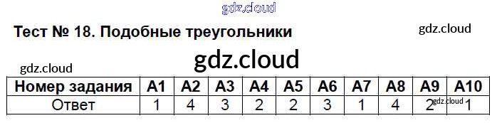 Ответ на задание Тест №18. Подобные треугольники Контрольно-измерительные материалы (КИМ) Геометрия за 8 (восьмой) класс Гаврилова 2018