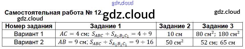 Ответ на задание СР-12 Контрольно-измерительные материалы (КИМ) Геометрия за 8 (восьмой) класс Гаврилова 2018