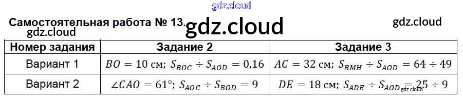 Ответ на задание СР-13 Контрольно-измерительные материалы (КИМ) Геометрия за 8 (восьмой) класс Гаврилова 2018