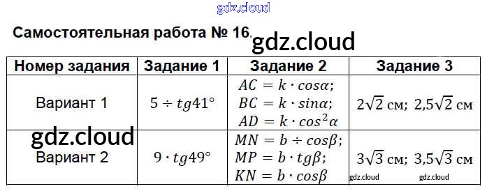 Ответ на задание СР-16 Контрольно-измерительные материалы (КИМ) Геометрия за 8 (восьмой) класс Гаврилова 2018