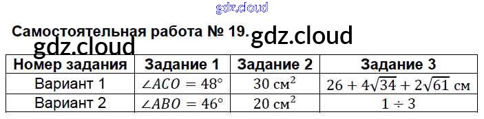 Ответ на задание СР-19 Контрольно-измерительные материалы (КИМ) Геометрия за 8 (восьмой) класс Гаврилова 2018