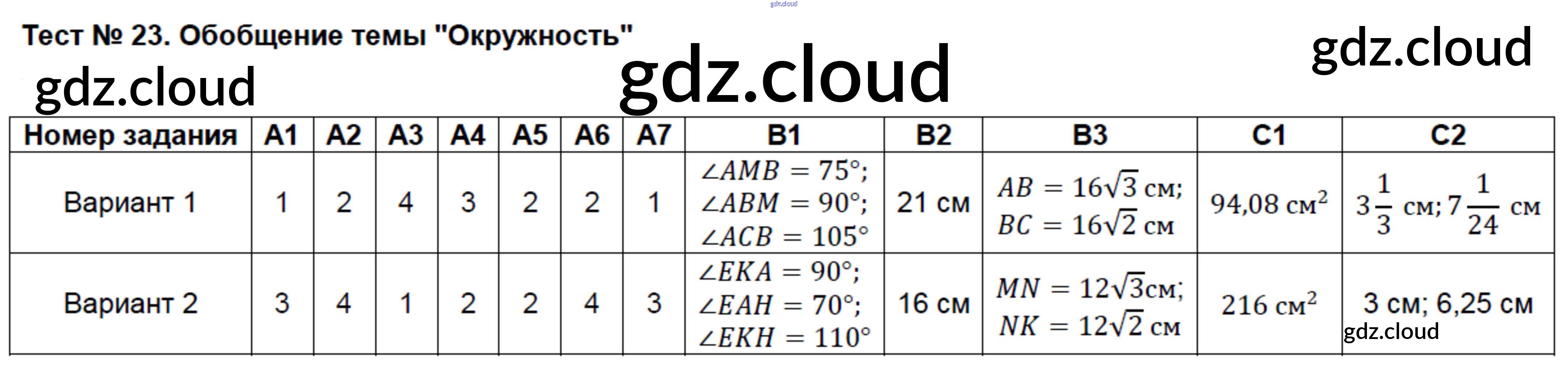 Ответ на задание Тест №23. Обобщение темы - Окружность Контрольно-измерительные материалы (КИМ) Геометрия за 8 (восьмой) класс Гаврилова 2018