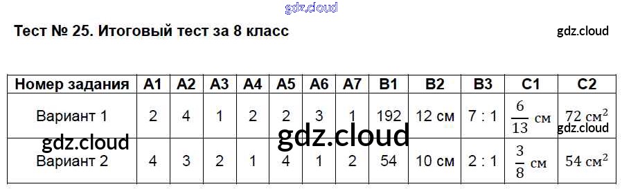 Ответ на задание Тест №25. Итоговый тест за 8 класс Контрольно-измерительные материалы (КИМ) Геометрия за 8 (восьмой) класс Гаврилова 2018