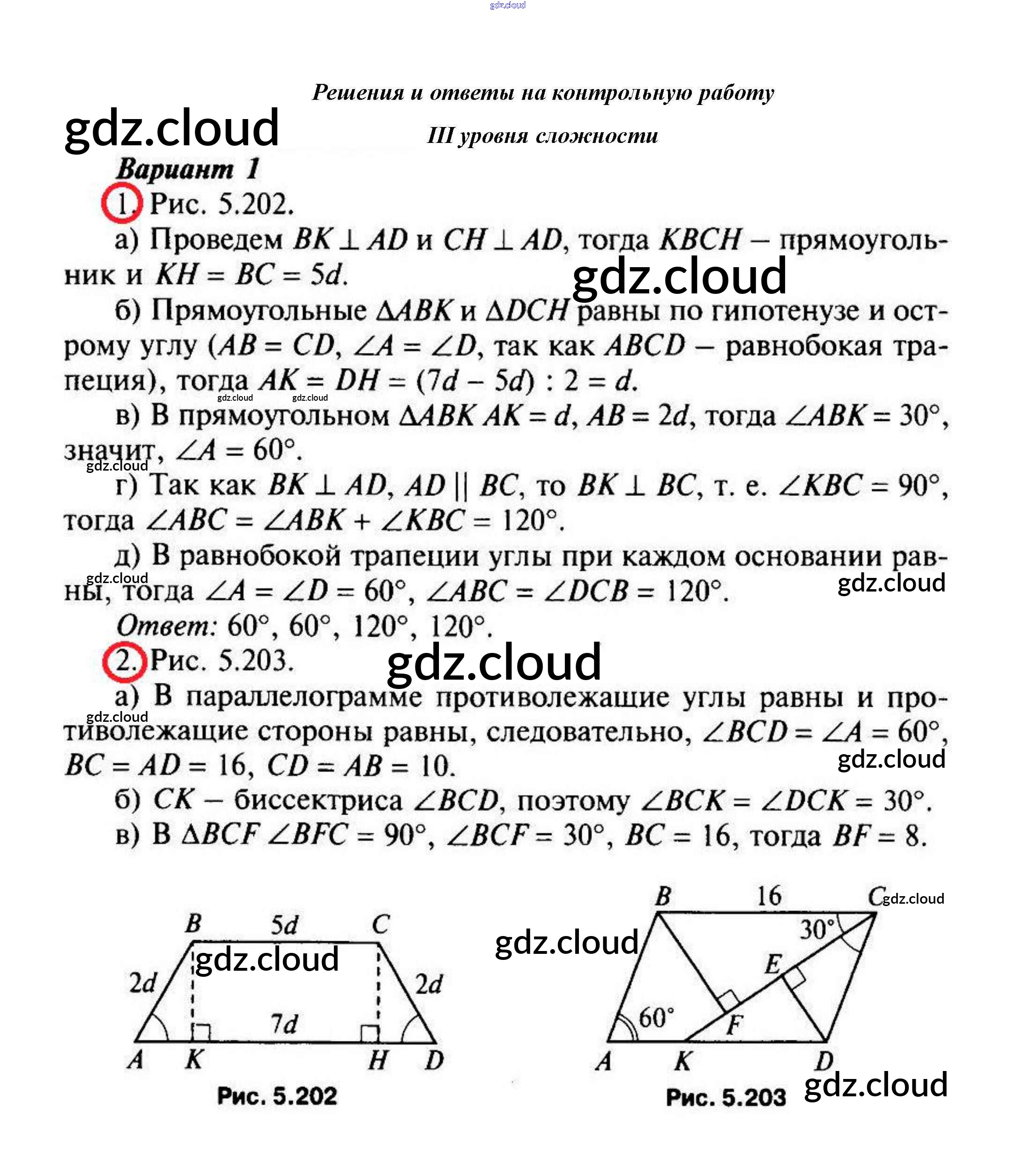 Уровень сложности 3 Контрольная работы 1 по Геометрии 8 класс Поурочные разработки Гаврилова    ВАКО