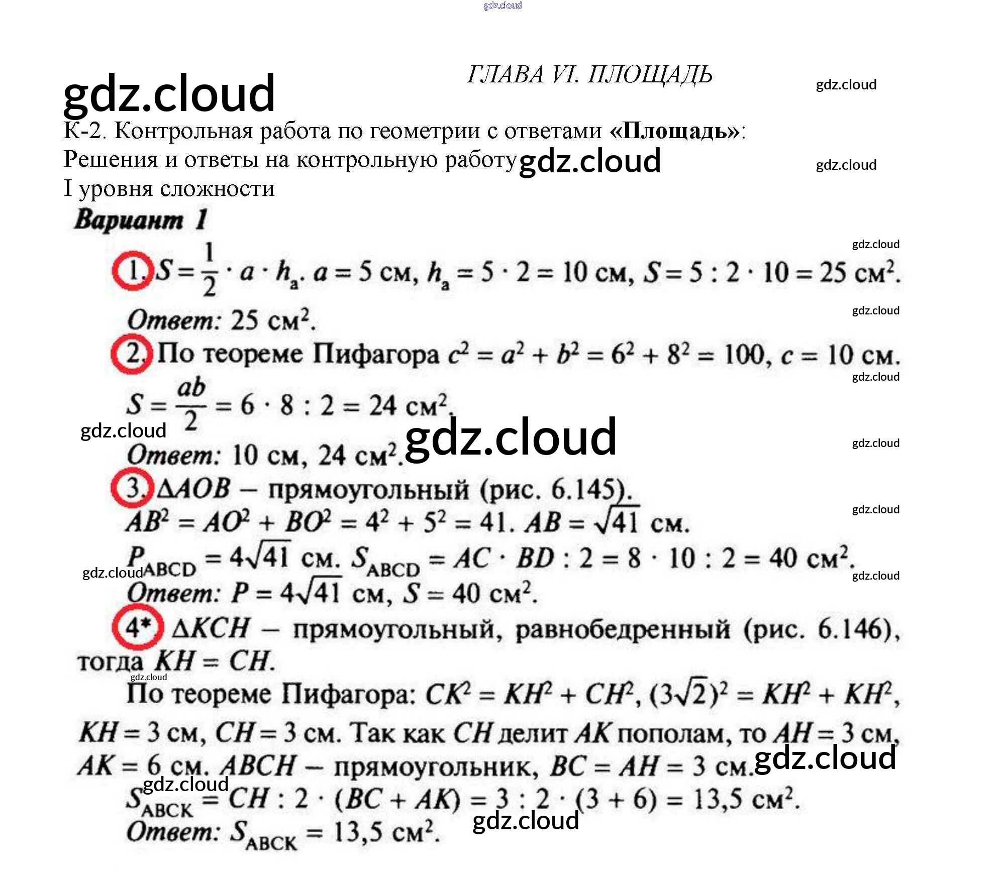 Уровень сложности 1 Контрольная работа 2 по Геометрии 8 класс Поурочные разработки Гаврилова    ВАКО