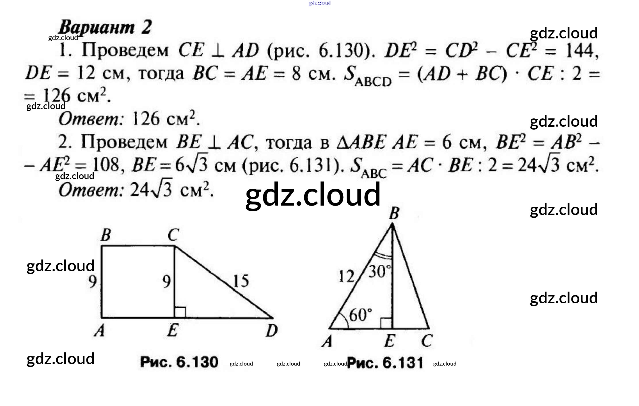 Уровень сложности 2 Самостоятельная работа 8 по Геометрии 8 класс Поурочные разработки Гаврилова    ВАКО